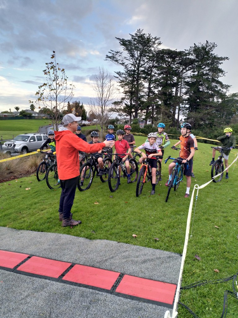 Cyclo-cross races are normally marked out in parks and / or urban areas over several different ground surfaces. Such as, grass, paths, concrete and gravel. They often include short sections or the odd obstacles that require riders to carry or push their bike. The goal is to do as many laps of the racecourse as possible within the allotted time of the rider’s age group. Cyclo-cross courses range from 500m to a few km. If you hear the bell ringing the lead rider is on their last lap. All lap counting stops once the lead rider finishes their next bell lap.